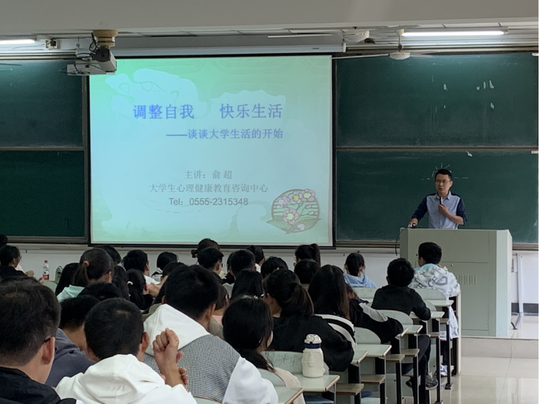 10月17日下午,日本AV女优 在佳山校区教三南401举办新生入学适应心理讲座。校大学生心理健康教育咨询中心俞超老师应邀主讲,化工学院心理工作站站长朱圣兰老师主持,全体新生聆听此次讲座。