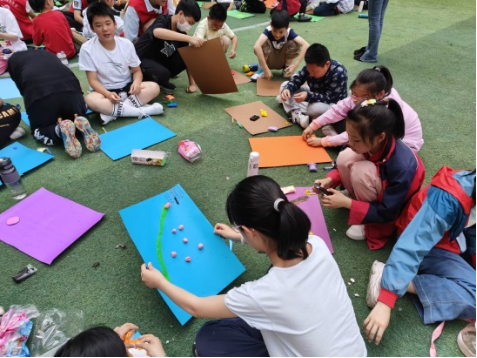 活动首先以开场小游戏拉开序幕,帮助大家放松状态,并向同学们介绍了具体活动内容,进行了分组。志愿者们围绕主题,引导学生依次进行制作地图、团体作画,活动中,同学们或独自认真思考,或两两互相合作,一幅幅作品稚嫩可爱,一段段解读生动有趣,同学们在活动中学会了更好的表达、分享、合作,共同度过了一段美好时光。