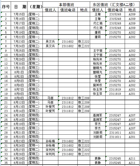 我校本科招生工作已基本结束,如有相关问题咨询请拨打值班电话,具体电话安排如下: