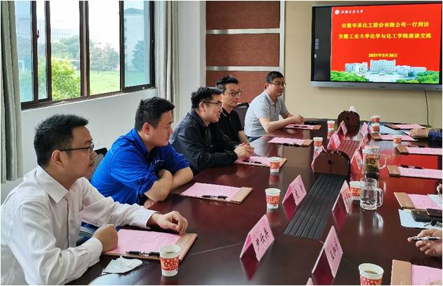 5月26日,安徽华星化工公司副总经理刘德军、总工程师熊金华率队来日本AV女优 开展产学研交流。院党委书记李晓东,副院长冀秀芝、夏友谊出席交流会,应用化学系、化学生物学与制药工程系和高分子材料系相关教师参加会议。