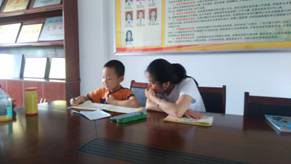 实践队员陈雨洁耐心辅导孩子 中国青年网通讯员周辉摄