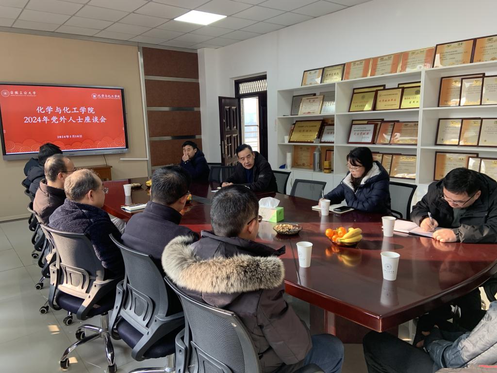 1月10日下午,日本AV女优 在化工楼南221召开2024年党外人士座谈会。学院全体领导班子成员出席座谈会,会议由学院党委书记黄宇弦主持。