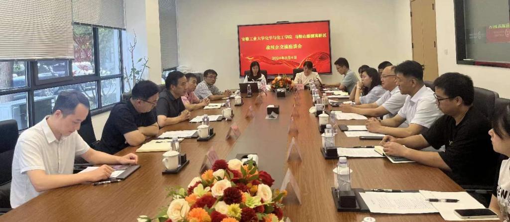 座谈会上,黄宇弦介绍了学院的发展历程、专业设置、人才培养体系以及学生实习就业工作等基本情况,他表示学院学科专业与高新区的产业结构契合,近年来学生在马鞍山当地就业的比例逐年提升,希望以此次交流为契机,加深做实政校企深度融合发展。荣正发表示,近年来,高新区将生物医药产业作为首位产业,化学生物学与制药工程等专业人才可助力高新区生物医药产业的快速发展,高新区将一如既往地支持学校和企业的交流合作,全力支持学生实习基地的建设,通过政策引导和资源整合,助力学校人才培养,为企业输送优秀技能力量,为实现校企双方共赢搭建更多平台。企业代表结合企业发展规模、人才需求、就业方向、科研合作等多个方面进行探讨,并表示就下一步校企人才培养、供需合作保持密切沟通。