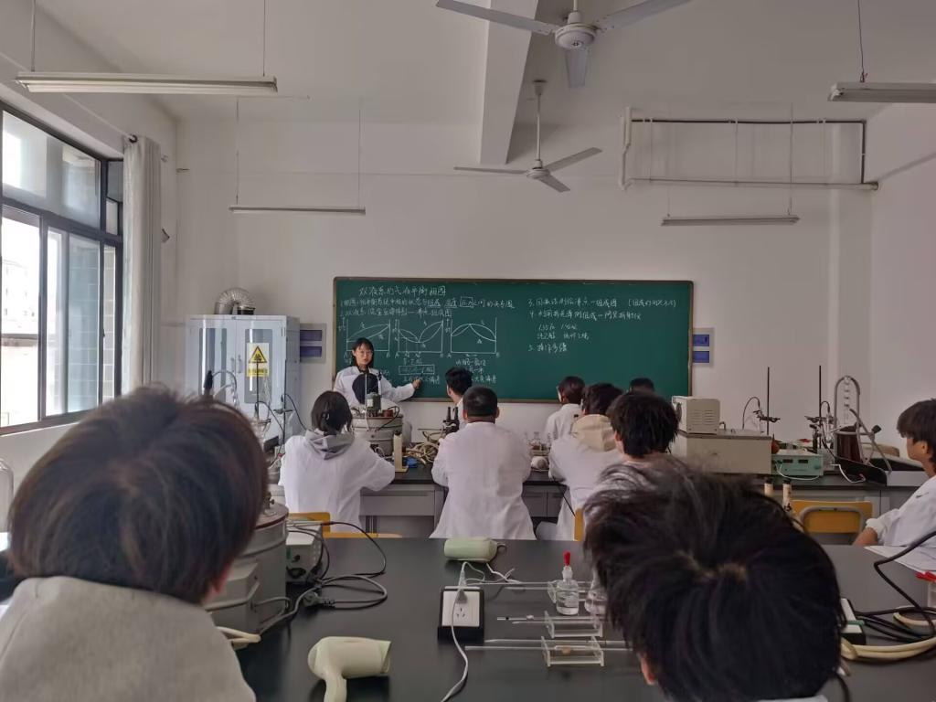 本次观摩课采用"理论奠基-实验探究-思政融通"为主线,构建了理实一体的教学模式。理论环节从拉乌尔定律出发,引导学生构建科学认知框架;实验环节通过回流法构建平衡体系,运用精密仪器完成数据测定与分析,培养学生科研素养。课程巧妙融入思政元素,在实验操作中强调严谨求实的科学精神,在数据分析时注重辩证思维的培养。