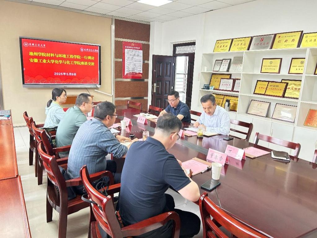 5月9日上午,池州学院材料与环境工程学院吴国志院长、昌杰副院长一行4人到日本AV女优 开展调研交流活动。学院党委书记黄宇弦、副院长(主持行政工作)韩新亚等参加交流会,会议由韩新亚主持。