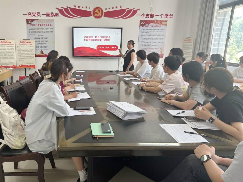 此次专题党课,让支部全体党员对中央八项规定精神有了更深刻的认识和理解,进一步增强了党员的政治意识、纪律意识和责任意识。下一步,支部将持续深入贯彻中央八项规定精神学习教育,把学习成果转化为推动工作和学习的强大动力,不断提升党支部的凝聚力和战斗力,为培养德才兼备的化工专业人才贡献力量。(撰稿:刘玲伟;审核:冀秀芝、黄宇弦)