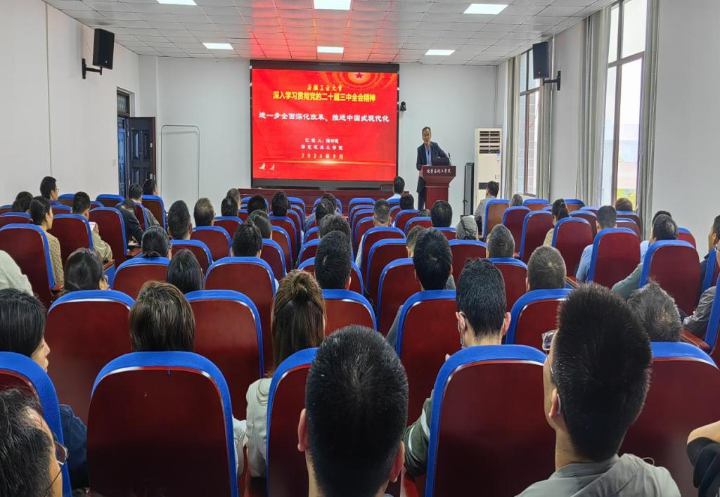 会议特别邀请了校思政课教师学习宣传贯彻党的二十届三中全会精神宣讲团成员、马克思主义学院副教授陆书建对党的二十届三中全会精神进行了专题宣讲。陆老师从“深刻认识进一步全面深化改革的再动员再部署、准确把握党的二十届三中全会的会议议题、紧扣进一步全面深化改革的主攻方向、坚持进一步全面深化改革的基本原则、锚定进一步全面深化改革的重大举措、大力弘扬和传承教育家精神”等六个方面进行了全面、深入、系统的宣讲和阐释。宣讲内容既具有理论高度,又紧密联系实际,主题鲜明、内容丰富,为学院广大教职工更好地理解和把握全会精神的核心要义和实践要求提供了很大帮助。