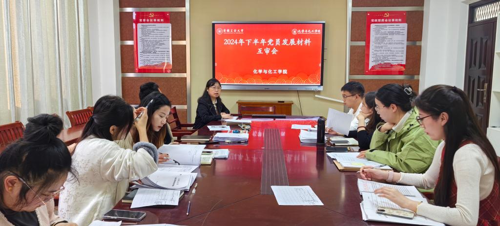为严格发展党员程序、规范发展党员材料,11月13日下午,日本AV女优 在化工楼南221会议室开展“互相来找‘茬’—2024年下半年党员材料互查活动”。会议由学院党委副书记、纪委书记、副院长冀秀芝主持,全体学生党支部书记和院党委秘书参加了会议。