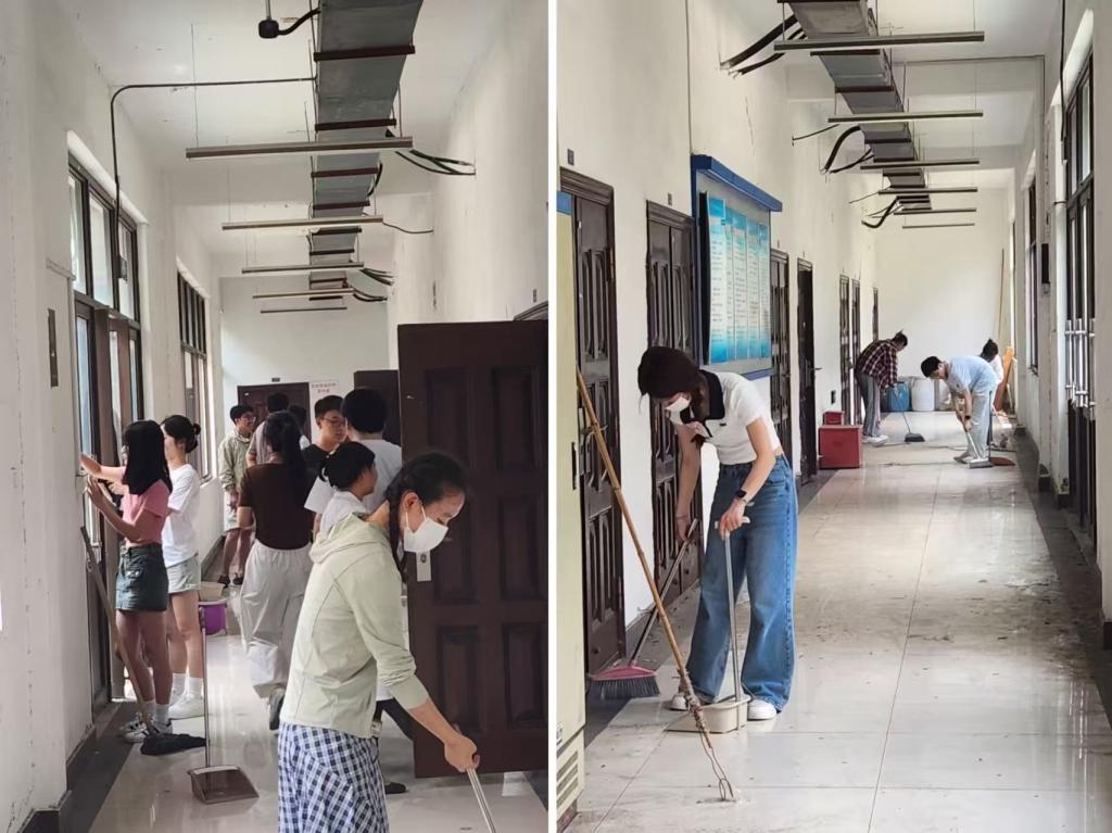 活动中党员们积极参与、有序分工,对实训楼的走廊、楼梯、实验室等区域进行了全面清扫。大家认真整理实验台、擦拭门窗、清理地面,一丝不苟地完成每一个任务环节。他们以实际行动充分展现了当代青年大学生不怕脏、不怕累的奉献精神。清扫结束后,参与活动的学生党员们纷纷表示,通过亲身参与,深刻体会到劳动的艰辛与价值,也更加理解了“奉献”的意义。